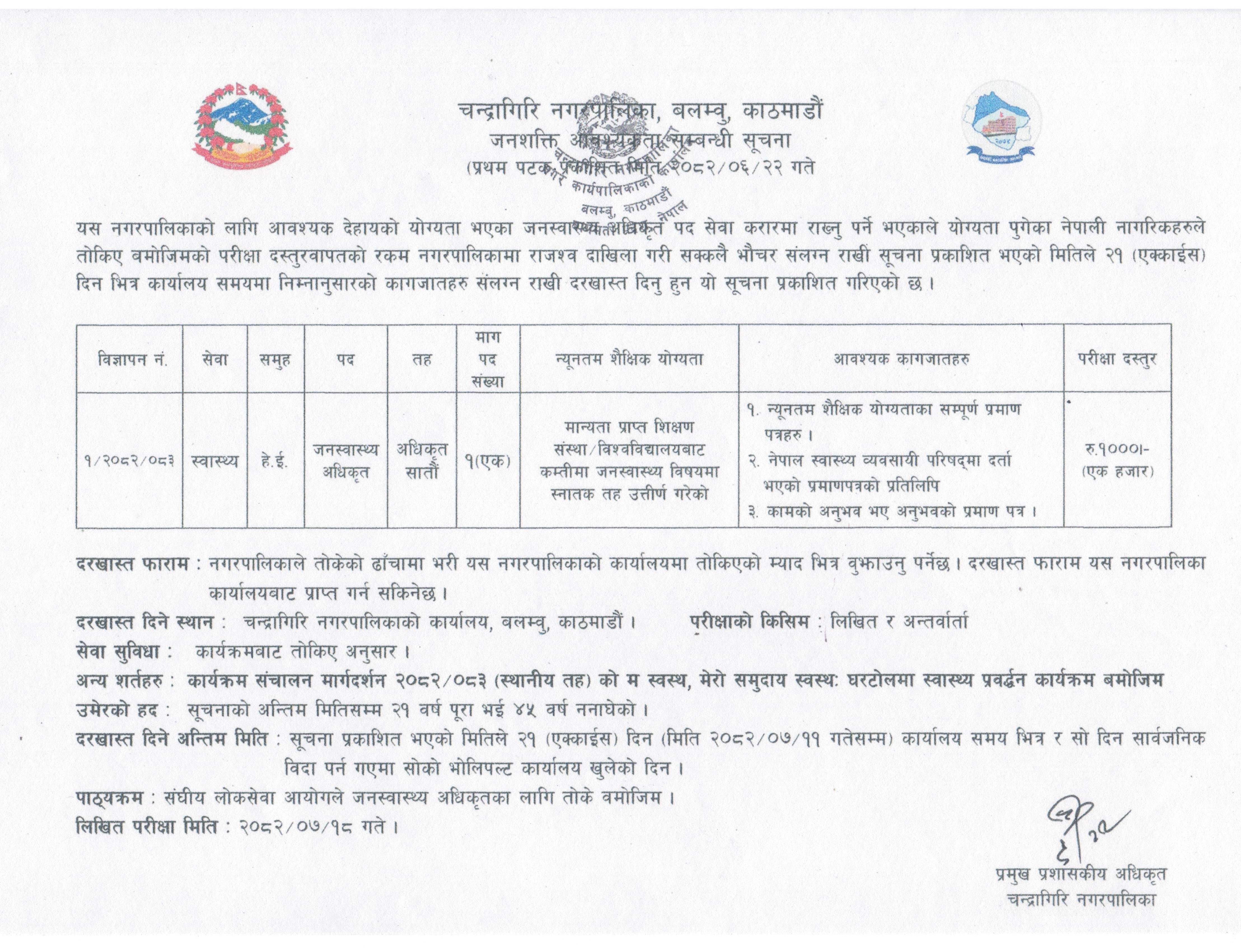 बोलपत्र संशोधन गरिएको सम्बन्धमा (CM/NCB/GOODS/12/2081/82 Supply, Delivery and Installation of AC Street Light in Chandragiri Municipality, Balambu, Kathmandu)