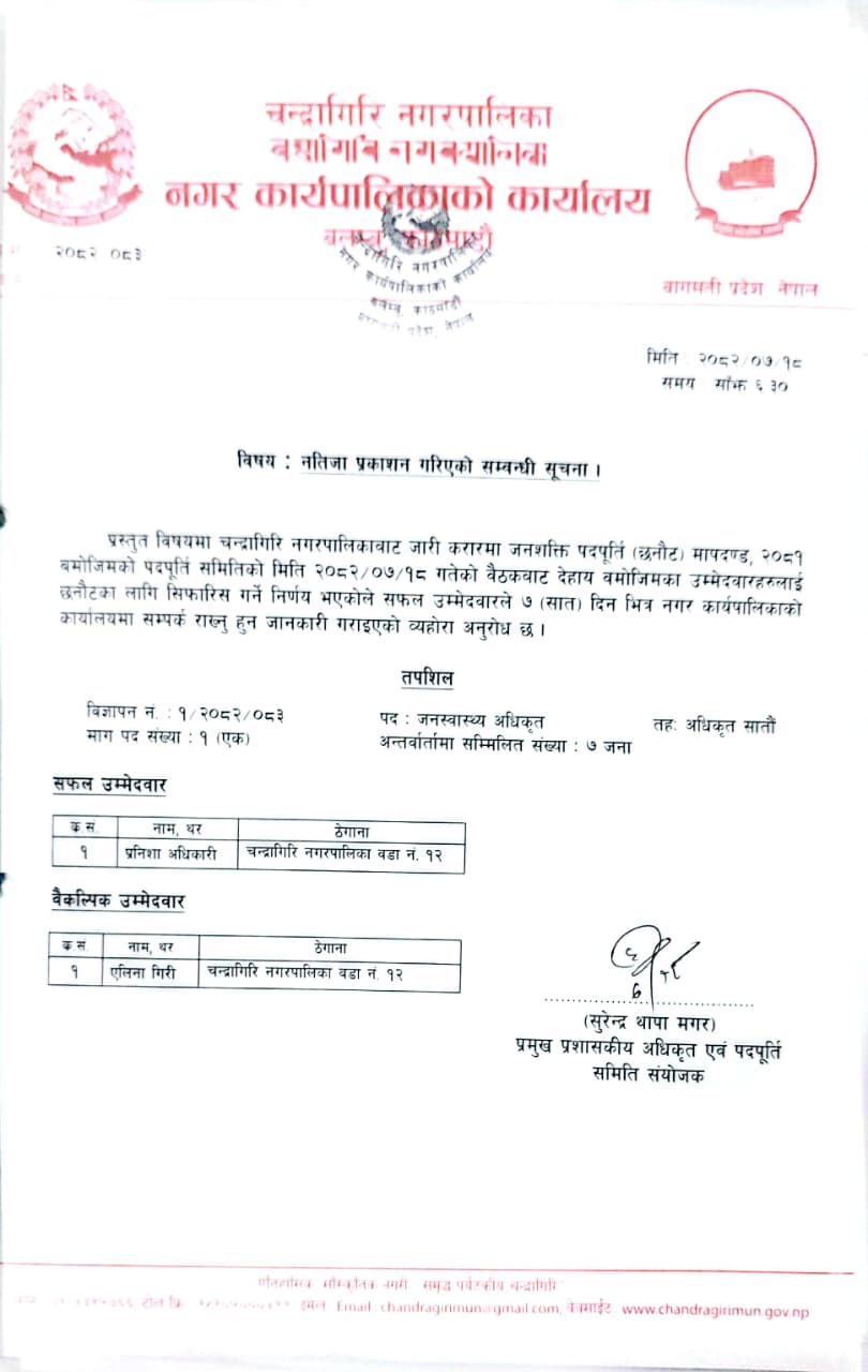 जनस्वास्थ्य अधिकृत पदको अन्तिम नतिजा प्रकाशन सम्बन्धी सूचना ।