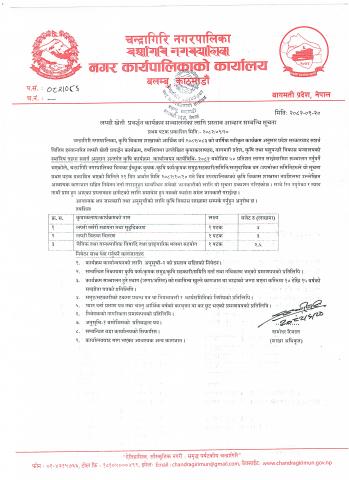 चमेनागृह सञ्चालन सम्बन्धी बोलपत्र आह्वानको सूचना ।