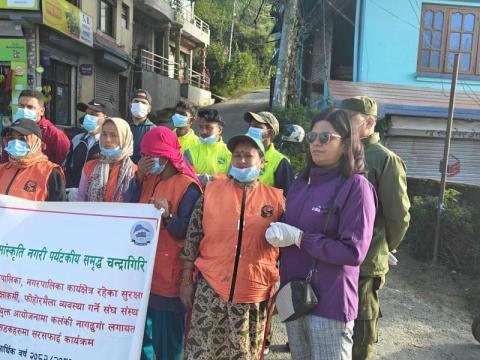 आज मिति २०७९/०४/३० गते नगर प्रमुख घनश्याम गिरीज्युको अध्यक्षतामा कलंकी नागढुंगा सडकखण्डमा चल्ने सवारी साधनहरुमा फोहोरमैला ब्यबस्थापन सम्बन्धि सचेतनामूलक अभियान तथा स्टिकर वितरण कार्यक्रम संचालन भएको छ। कार्यक्रमको प्रमुख अतिथिमा प्रहरी नायव महानिरीक्षक मीरा चौधरीज्यु रहनु भएको थियो | उक्त कार्यक्रममा नगर प्रमुखज्युले विभिन्न सचेतनामूलक स्टिकर हस्तान्तरण गरि सार्वजनिक सवारी साधनमा टास्ने तथा सवारी चालकलाई फोहोरदानीको ब्यबस्थापन गर्न गराउन निर्देशन दिने कार्य भएको थियो। कार्यक्रममा नगर उप प्रमुखज्यु, विभिन्न वडाका वडाध्यक्षज्युहरु, कार्यपालिका सदस्यज्युहरु, नगरपालिकाका विभिन्न शाखाका शाखा प्रमुखज्युहरु, फोहोरमैला ब्यबस्थापन गर्ने संस्थाहरु तथा नेपाल प्रहरी, सशस्त्र प्रहरी तथा नेपाल सेनाका प्रतिनिधिज्युहरुको पनि उपस्थिति रहेको थियो।
