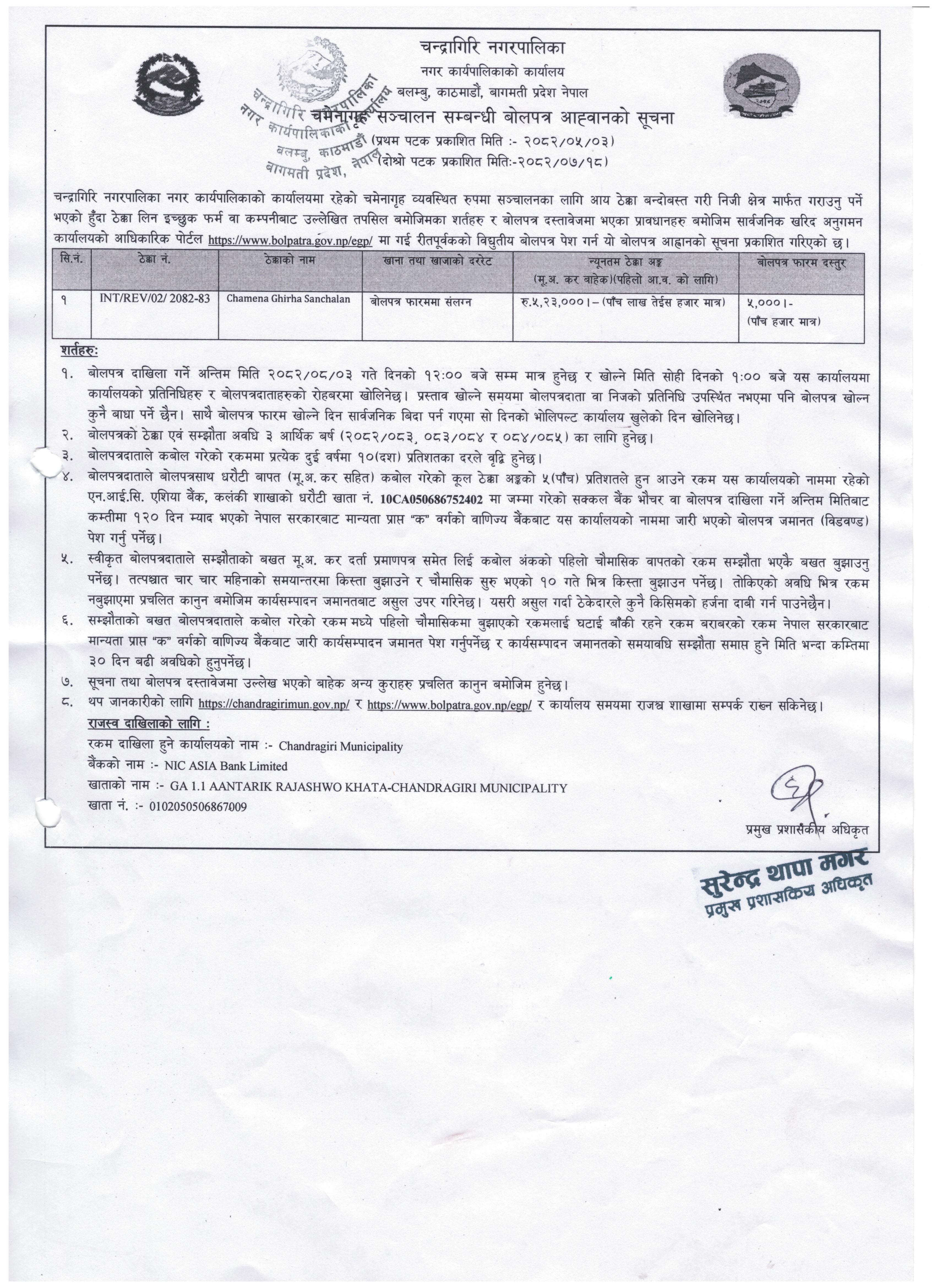 आर्थिक प्रस्ताव खोल्ने सम्वन्धी सूचना(CM/Works/NCB-01/2082/83) |