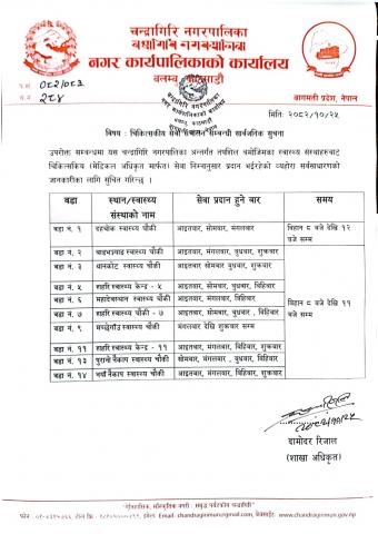 चिकित्सकीय सेवा संचालन सम्वन्धी सार्वजनिक सूचना |
