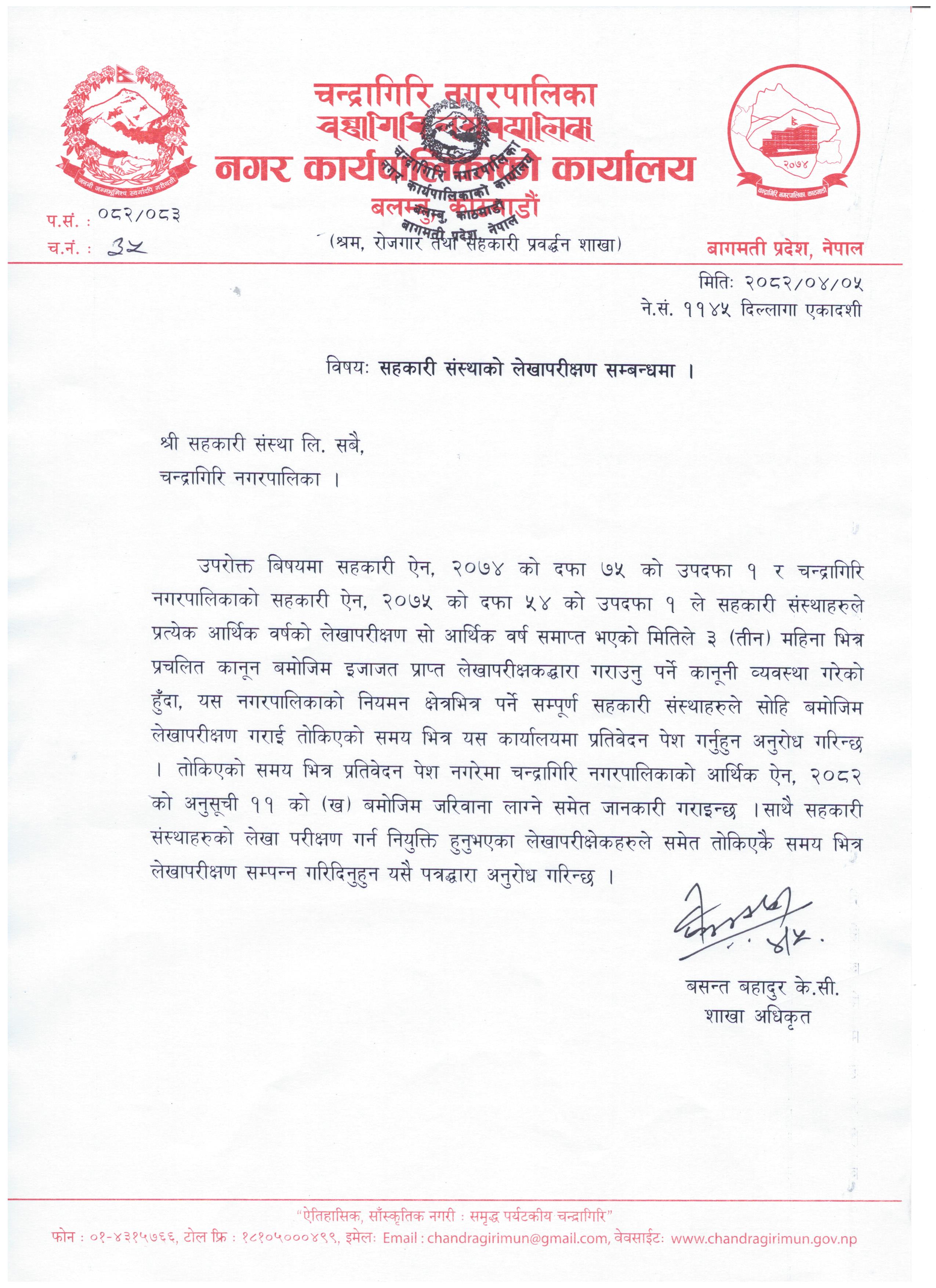 सहकारी संस्थाको लेखापरीक्षण सम्बन्धमा ।