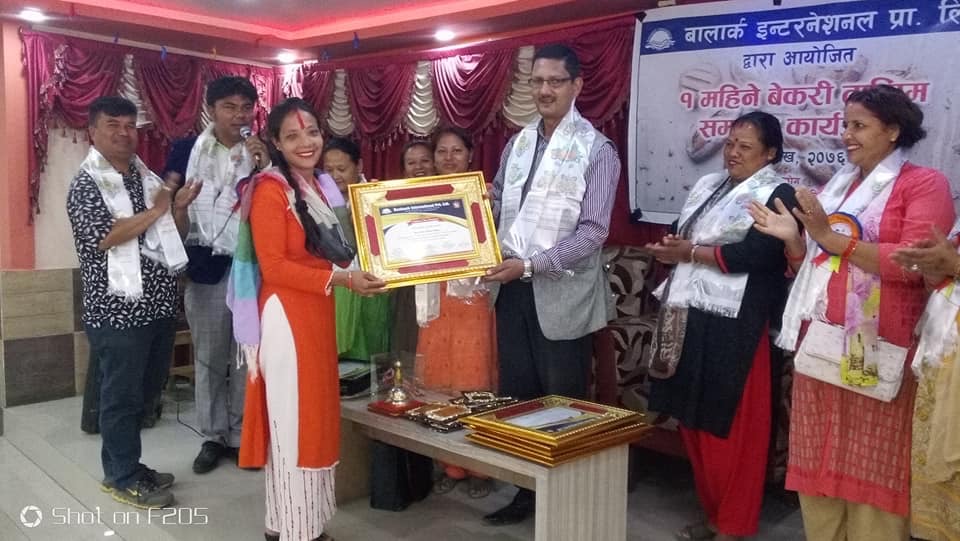 चन्द्रागिरी नगरपालिका नगर कार्यपालिका सदस्य श्री रिना महर्जनज्यूको अध्यक्षतामा सुसम्पन्न भएको १ महिने बेकरी तालिमको समापन तथा प्रमाणपत्र बितरण कार्यक्रममा प्रदेश नं. ३ का माननीय सदस्य श्री केशब पोखरेलज्यूको प्रमुख आतिथ्यमा , चन्द्रागिरी नगरपालिकाका उप प्रमुख श्री लिशा नकर्मीज्यूको बिशेष आतिथ्यतामा र चन्द्रागिरी नगरपालिका नगर कार्यपालिका सदस्यहरुको आतिथ्यमा मिति २०७६ बैशाख २५ गते सम्पन्न भयो |